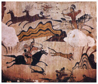 A mural from a warrior's tomb depicting a scene of kyorugi (sparring). |